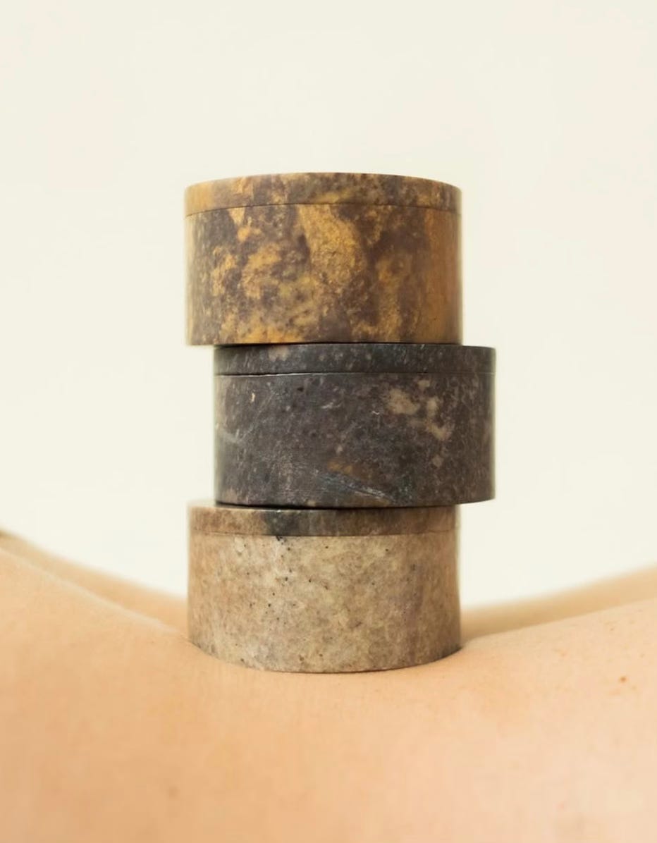 At the same time, we’re going for an aesthetic, ethereal feel with the company. So the question becomes: how do we take something scientific and obscure, and ground it in this creative, beautiful, ethereal company and ethos we want people to feel? That’s definitely been a challenge. For example, we created these soapstone containers. We’ve never seen anyone use soapstone this way. It started as a creative idea, but then came the practical questions: how do we actually do it? Who can make it? How do we ask them to make it close properly? And what challenges does that create for us?